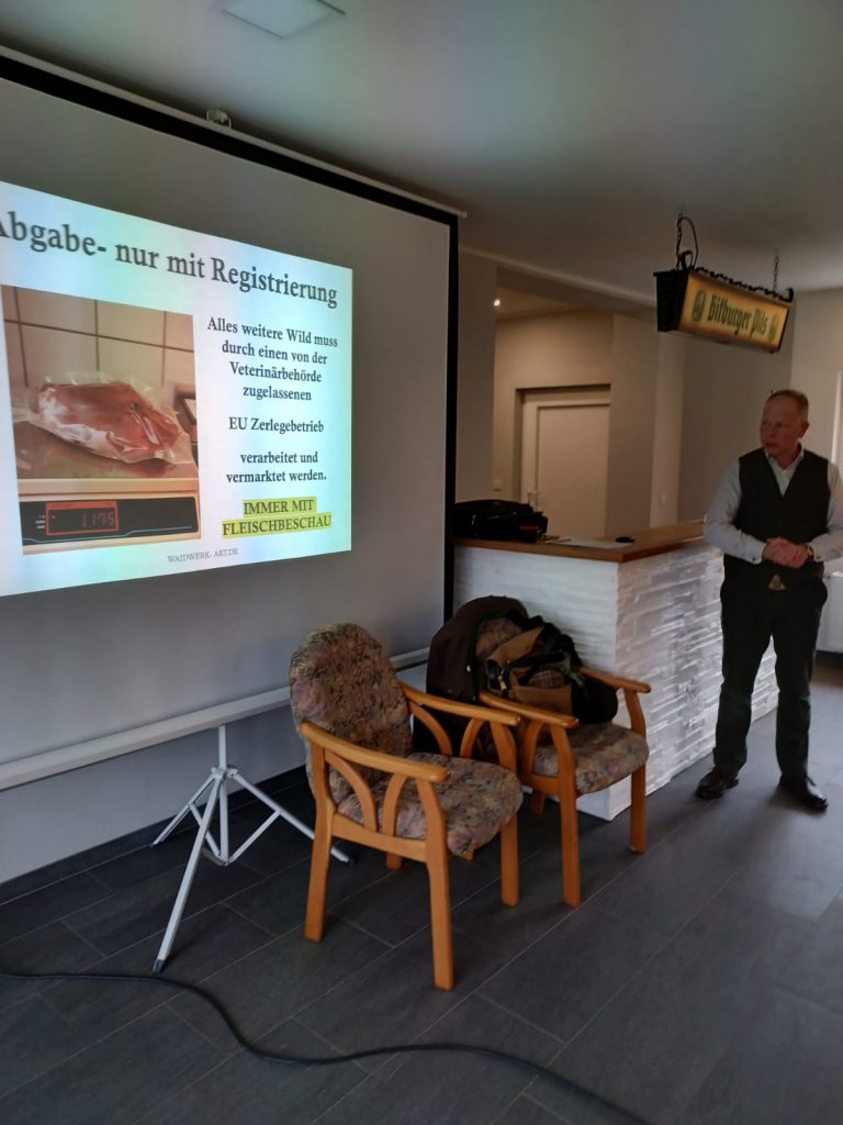 In altbewährter Weise ist es unserem Referenten, Revierjagdmeister Frank Lemke, hervorragend gelungen, die Themenbereiche „Wildbewirtschaftung, Wildvermarktung einschließlich der gesetzlichen Vorschriften, Wildschäden erkennen, Umgang mit Wildschäden“ des zweitätigen Moduls Wildbewirtschaftung zu vermitteln.