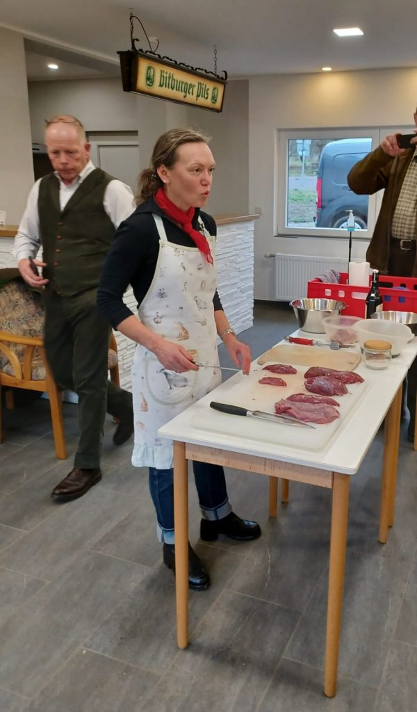 Seine Ehefrau, Hauswirtschaftsmeisterin Viktoria Lemke, hat an einer Wildkeule das