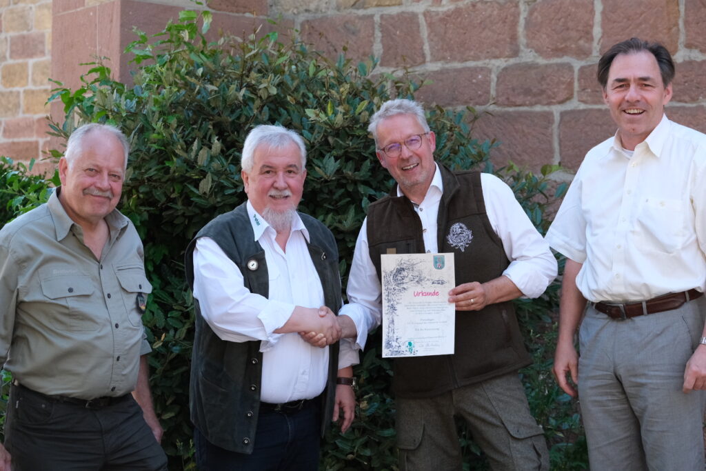 Die 1. Übergabe eines Preises fand am 24. Juni in Wachenheim statt. Peter Seelmann, Landesvorsitzender, und Georg Gotting, Schatzmeister des Jagdaufseherverbandes, überreichten den Preis an Dr. Anton Negele, Vorsitzender, und Knut Bruckbauer, Schatzmeister und Ansprechpartner der Kitzretter der Kreisgruppe Bad Dürkheim-Neustadt. Der Jagdaufseherverband Rheinland-Pfalz e.V. ist eine landesweite Vereinigung von fortbildungswilligen Jägerinnen und Jägern, die sich zu geprüften Jagdaufseherinnen und Jagdaufsehern weitergebildet haben. Der Jagdaufseherverband bietet auch die Weiterbildung zum Revierhegemeister (BDJV) des Bundes Deutscher Jagdaufseherverbände an. Zu den Zielen und Aufgaben des JAV gehören u.a. die freilebende Tier- und Pflanzenwelt im Rahmen des Jagdschutzes zu schützen, artenreich zu erhalten sowie den Natur-, Umwelt-, und Tierschutz im Rahmen der bestehenden Gesetze zu fördern. Die Belange der Landeskultur sind hierbei zu beachten und zu wahren. Weitere Informationen finden sich auf der Homepage.